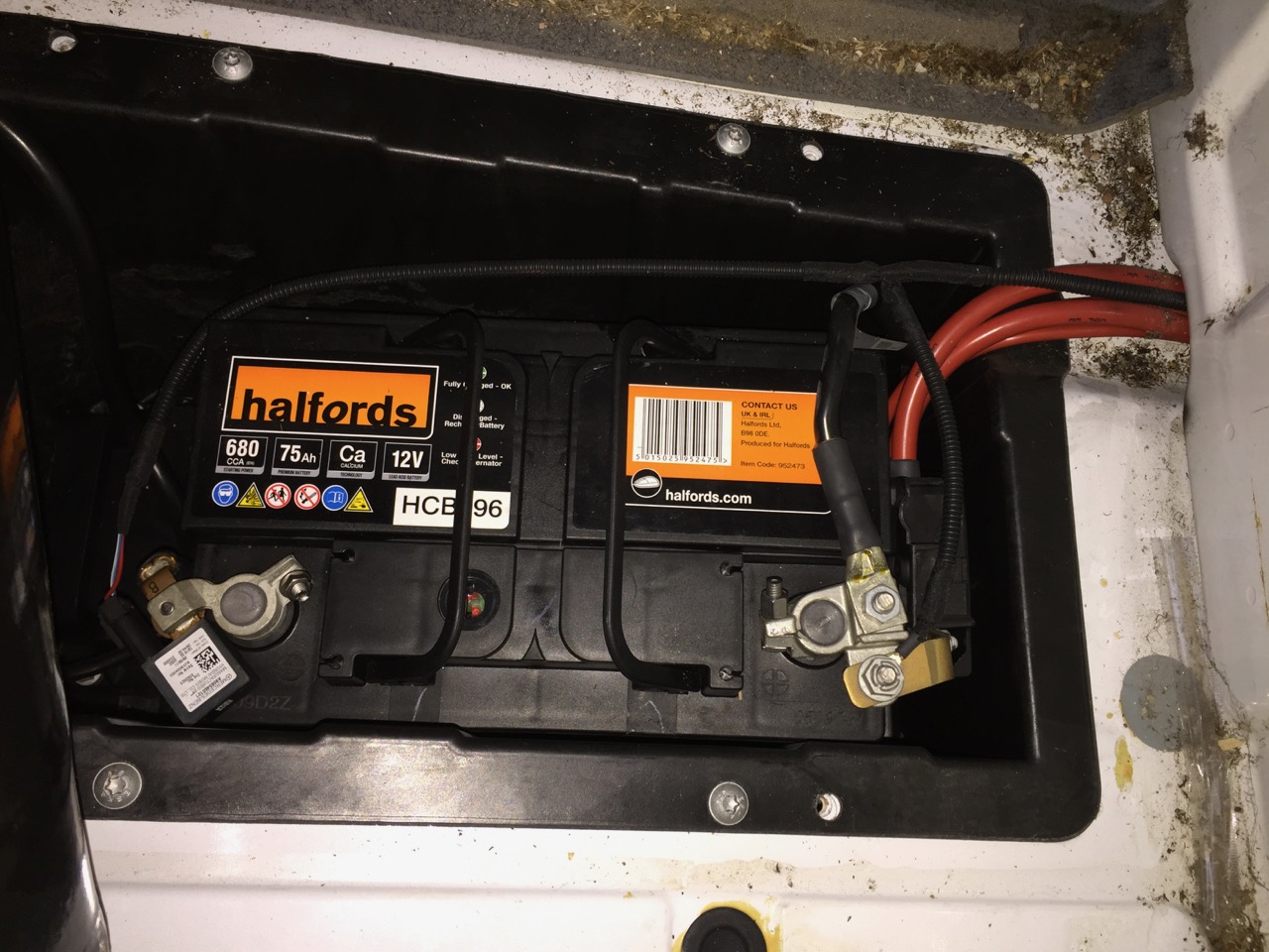 I wanted to figure out how to disconnect the battery so I could safely connect a split charger. Here’s how I found the ground point from the negative terminal of the battery on our 2012 NCV model.