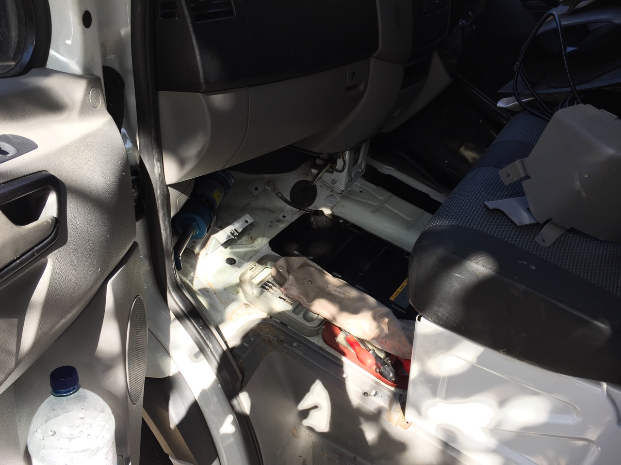 There’s the earth point for the black cable from the negative post of the battery, on the centre console column. The battery is under the black panel in the footwell.