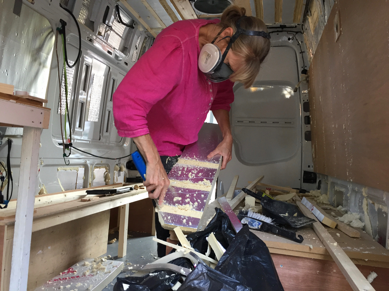 To be fair, we haven’t spent all the intervening time fitting insulation, but every weekend, pretty much, we’ve been doing part of the job, just enough to progress some other part of the job: fitting the bench bed, or the shelf above the cab.