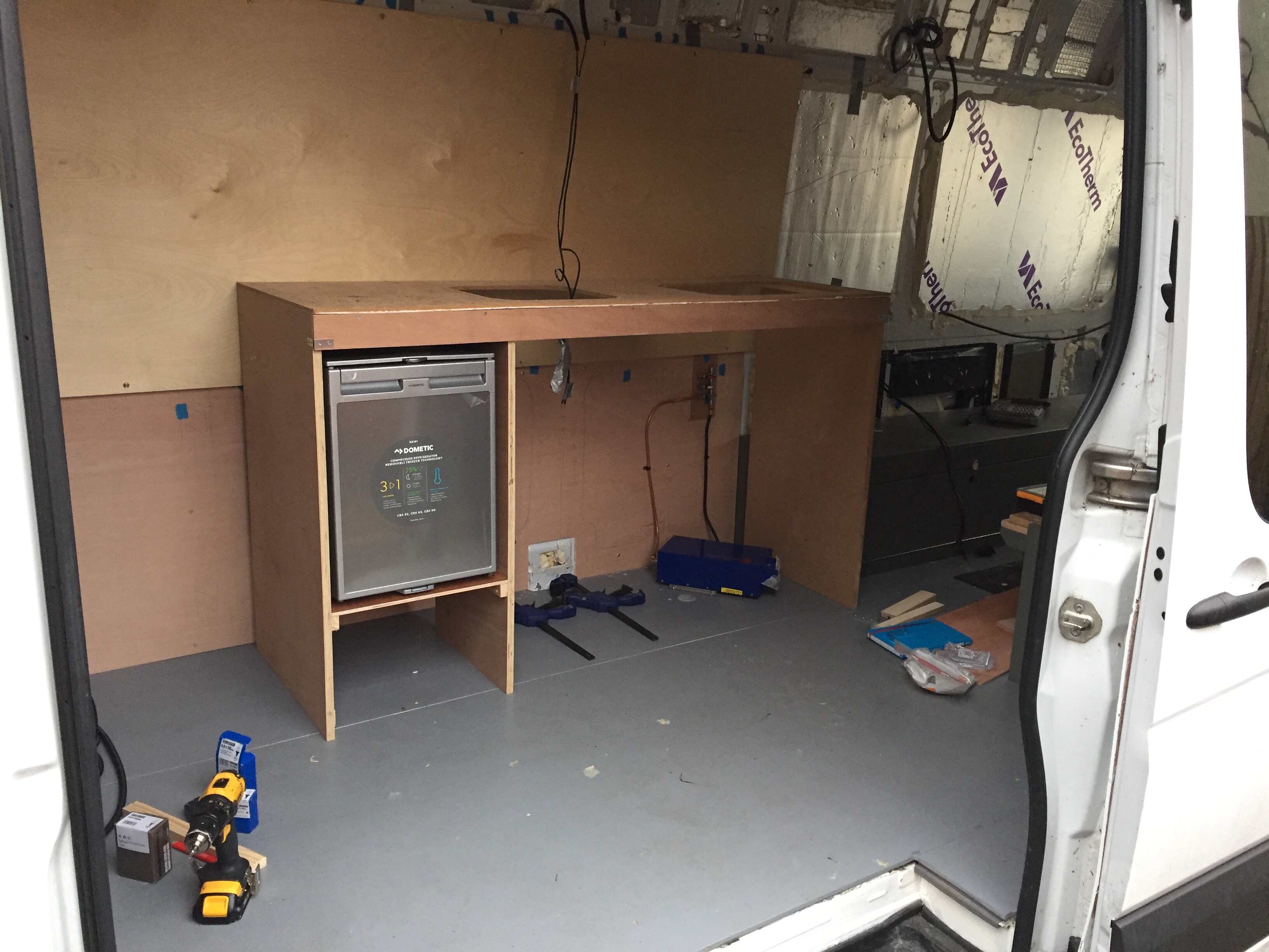 We’re feeling the pressure. We’re going away for 4 days this coming weekend, so we need some basic stuff sorted out in the van. And we’ve hit our 6 month conversion milestone, which means a demanding letter from the insurance company looking for evidence that we’ve converted the van sufficiently from a panel van to a motor home.